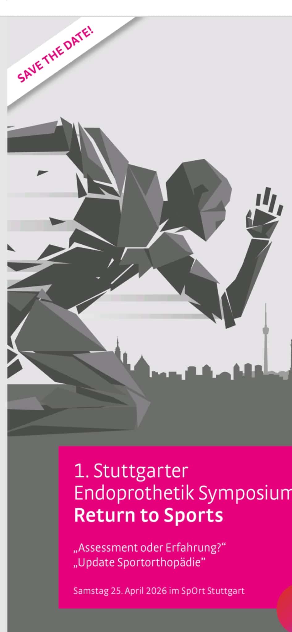 SAVE THE DATE! 1. Stuttgarter Endoprothetik Symposium "Return to Sports" - 25. April 2026